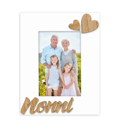 Zep Cornice Nonni Vertical in legno, colore bianco, con scritta NONNI a rilievo e decoro a forma di cuore in 3D, da tavolo, adatta come regalo alla festa dei nonni.